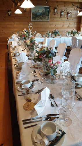 Wir servieren Ihnen typische bayerische Gerichte, darunter viele Berchtesgadener Spezialitäten. Nicht nur unsere Nudeln und Brote, sondern auch alle Torten, Kuchen und natürlich die Watzmann Praline stellen wir selbst her.